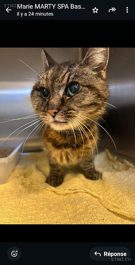 Chatte âgée signalée depuis plusieurs jour vers la rue Monthéolo à Monthey. Elle se trouve actuellement au cabinet Dewarrat.