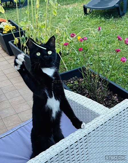 Nera con macchia sotto il collo e sulle zampine anteriori bianche