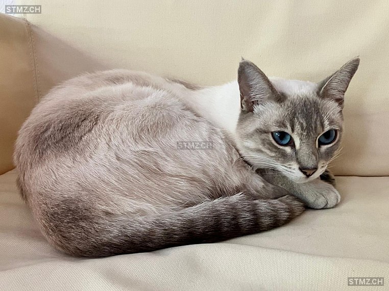 Yumi ist eine 2j. Siam-Burmesen Dame, weiss, bzw. hellbeige, mit braunen Ohren und sehr blauen Augen. Sie ist sehr klein und hübsch, und sehr schüchtern.