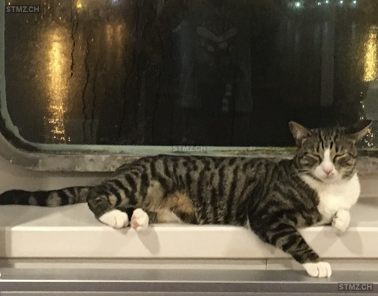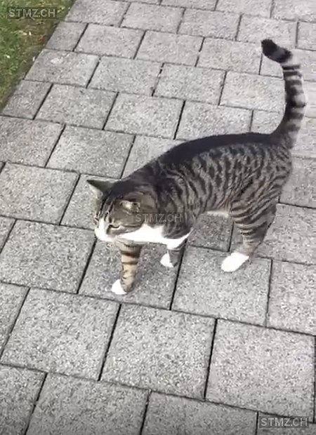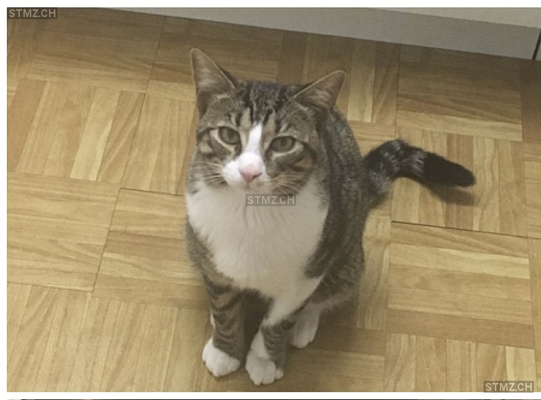 Geknickter Schwanz an zwei Stellen / Brust, Pfoten und Schnauze schneeweiss / brauner Fleck auf Schnauze links / getigert grau-schwarz / ca. 7-8 kg