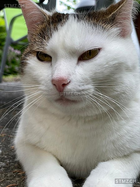 Schneeweiss nur am Kopf/Ohren,Schwanz und kleine Flecken am Rücken - Braun schwarz getigert, Jemand füttert Ihn, er braucht Spezialfutter und sollte zum Tierarzt! Sichtung immer wieder Kaffeestrasse und Erachfeld, Finderlohn!!!
