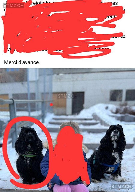 sur le collier medaille avec le numero de telephone. Amerikanischer Cocker Spaniel weiblich, grösser als 30cm. Schlappohren, Vollständig, Halblang/Lang, Schwarz. Jung/Erwachsen,