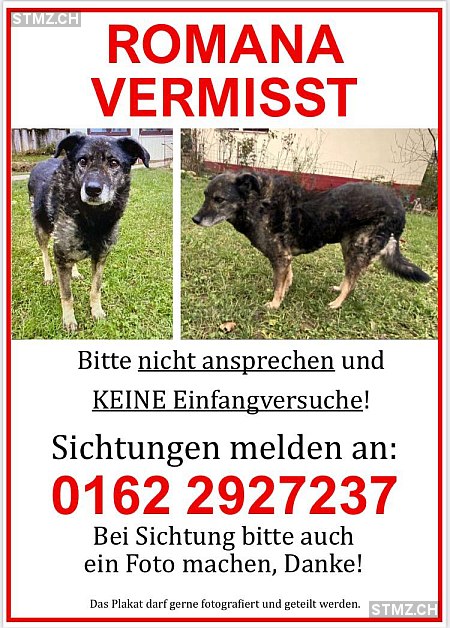 Die Hündin "Romana", die ursprünglich aus einem Tierheim in Bulgarien kommt, hatte vor ein paar Monaten das Glück nach Deutschland auf eine Pflegestelle zu kommen und ist nach ein paar Wochen in ihre eigene Familie gezogen. Leider ist sie dort am 29.3.2025 im Umkreis von 79282 Ballrechten-Dottingen (Nähe Freiburg) entlaufen. Wurde sie jetzt in der Nähe von Basel gesehen.