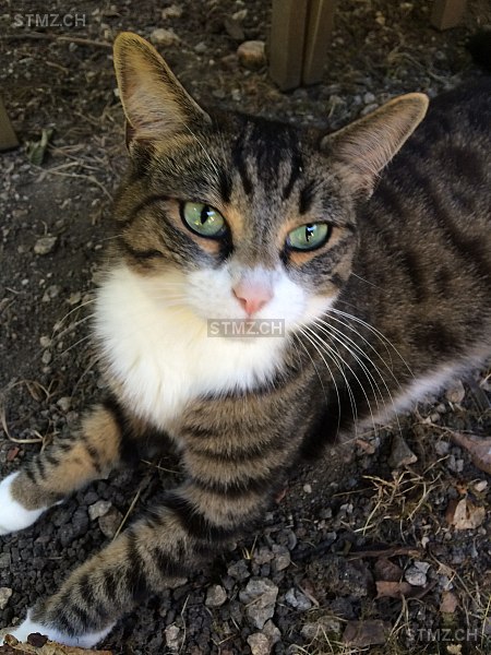 Kleine anhängliche aber trotzdem scheue Katze. Hat weisse Füsse.. Bitte schauen Sie auch in Garagen oder sonstigen Unterschlupfmöglichkeiten nach.