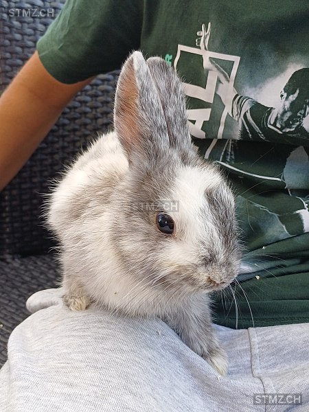 Sehr scheu. Könnte verletzt sein, weil er vom Fuchs erwischt wurde. Mit weißem Fleck am Kopf.